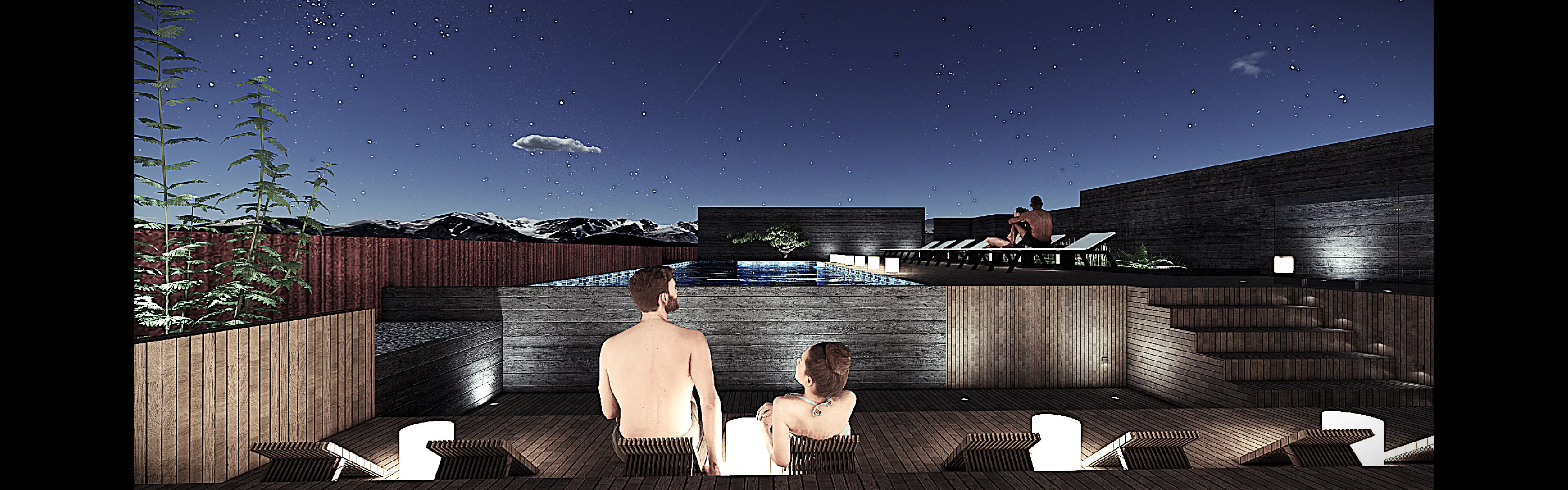 The design takes water, topography, and collective settlement memory as the starting point for spatial development, reinterpreting contemporary forms of accommodation within the valley.