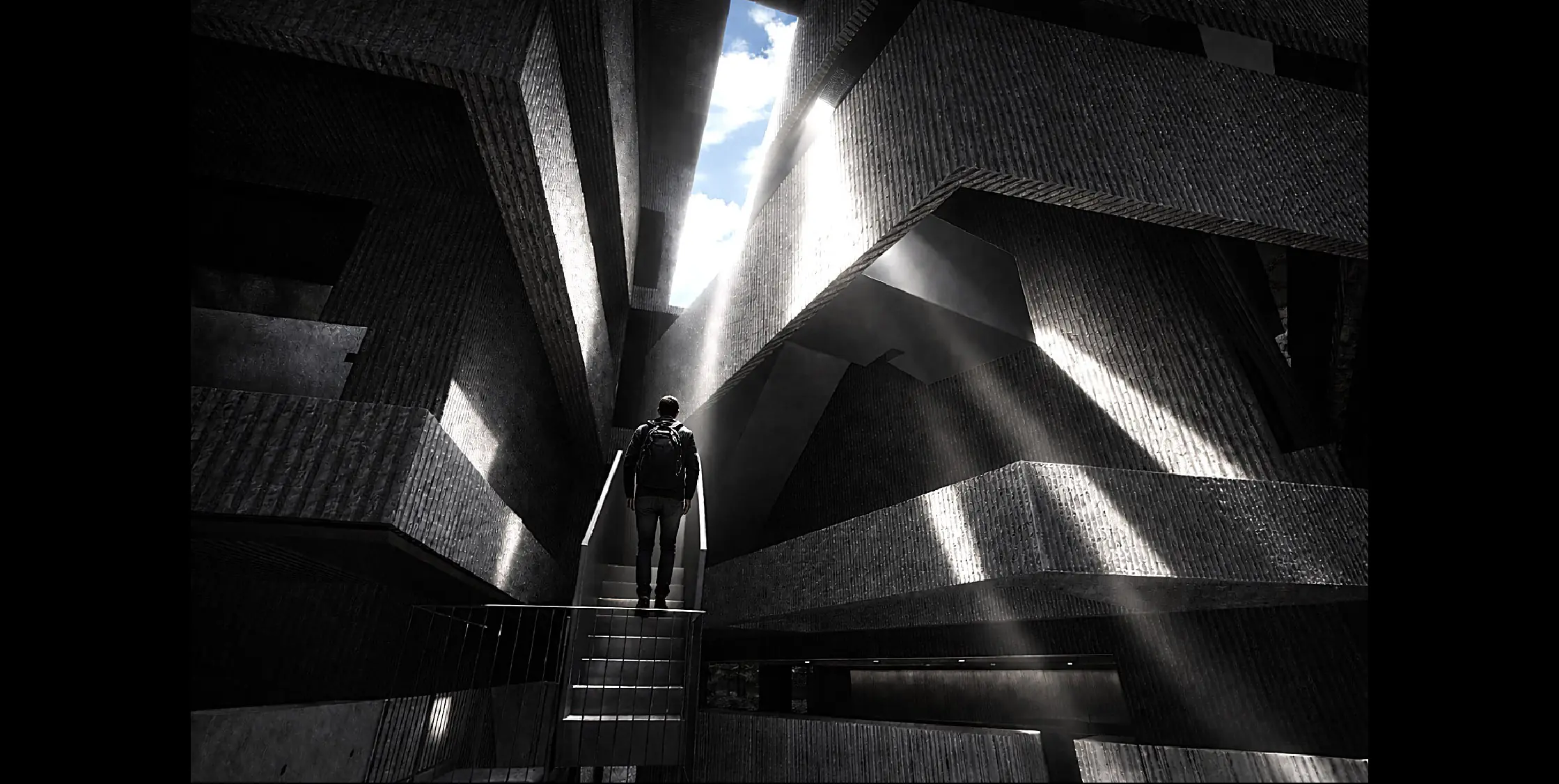The architecture unfolds along the mountainside like rocks suspended on the slope, lightly resting within nature. Moving through the space feels like weaving between landforms and rock crevices; each step reveals the earth’s breath, gently flowing between vitality and tranquility.