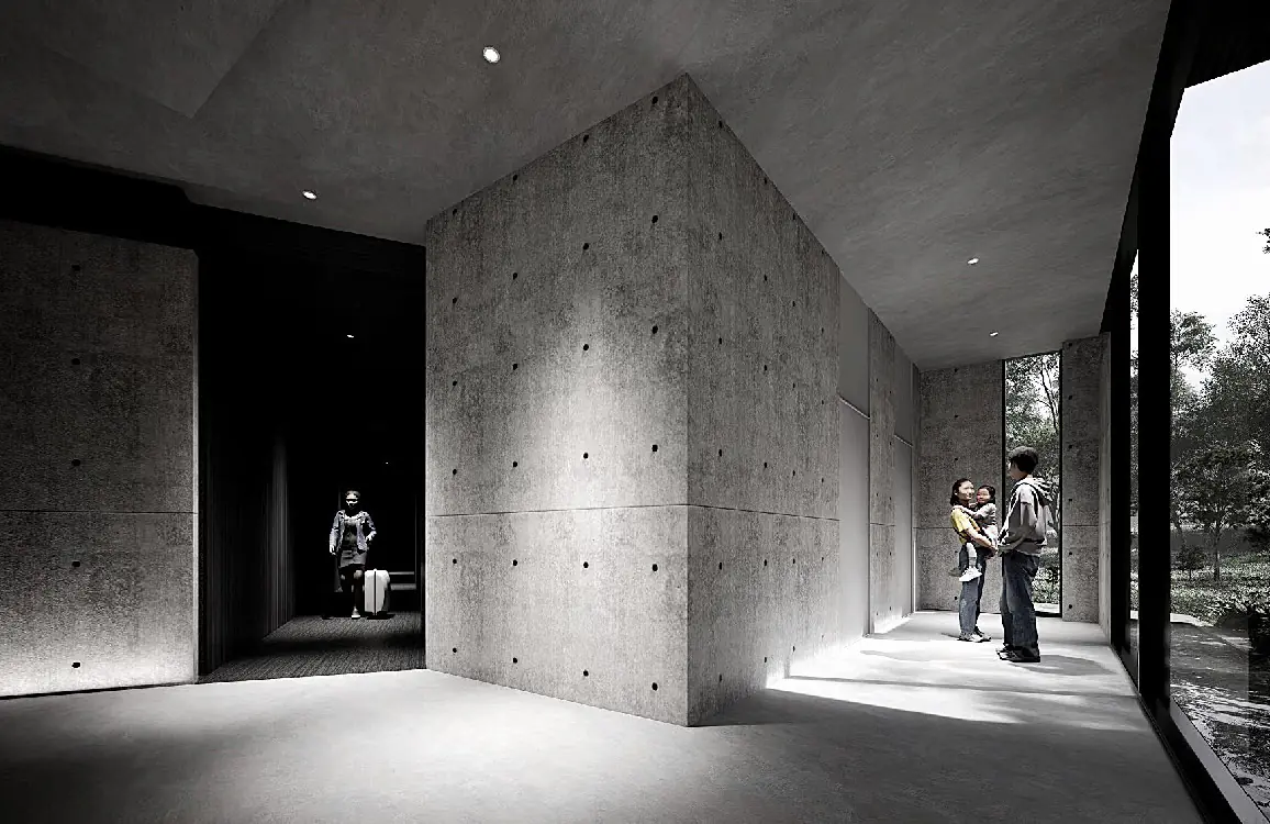 設計以水、地形雨聚落記憶作為空間發展的起點,重新詮釋山谷中的當代旅宿的樣貌。