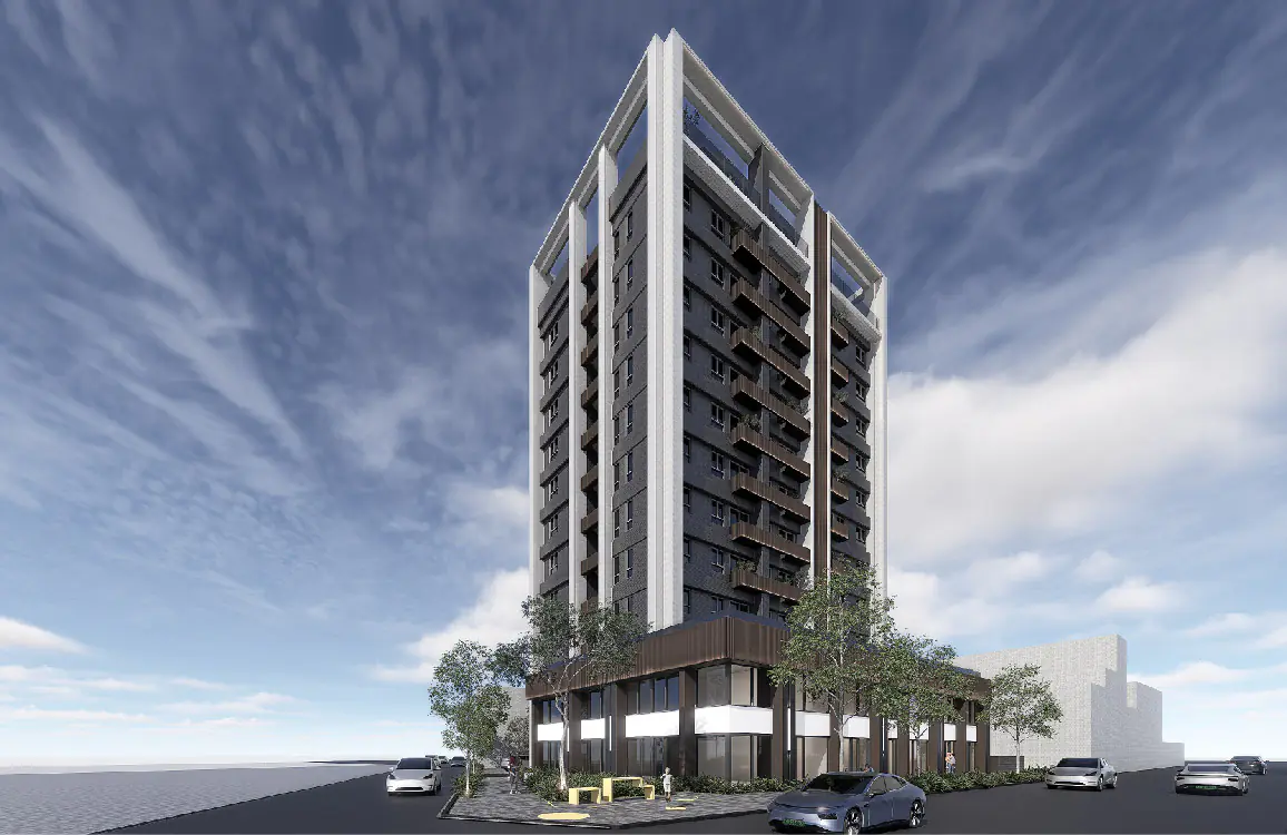 本案鄰近上楓國小,在追求高坪效的同時,也需回應鄰里的公共性。設計保留一處向街區開放的共享空間,使住宅成為社區互動的延伸。